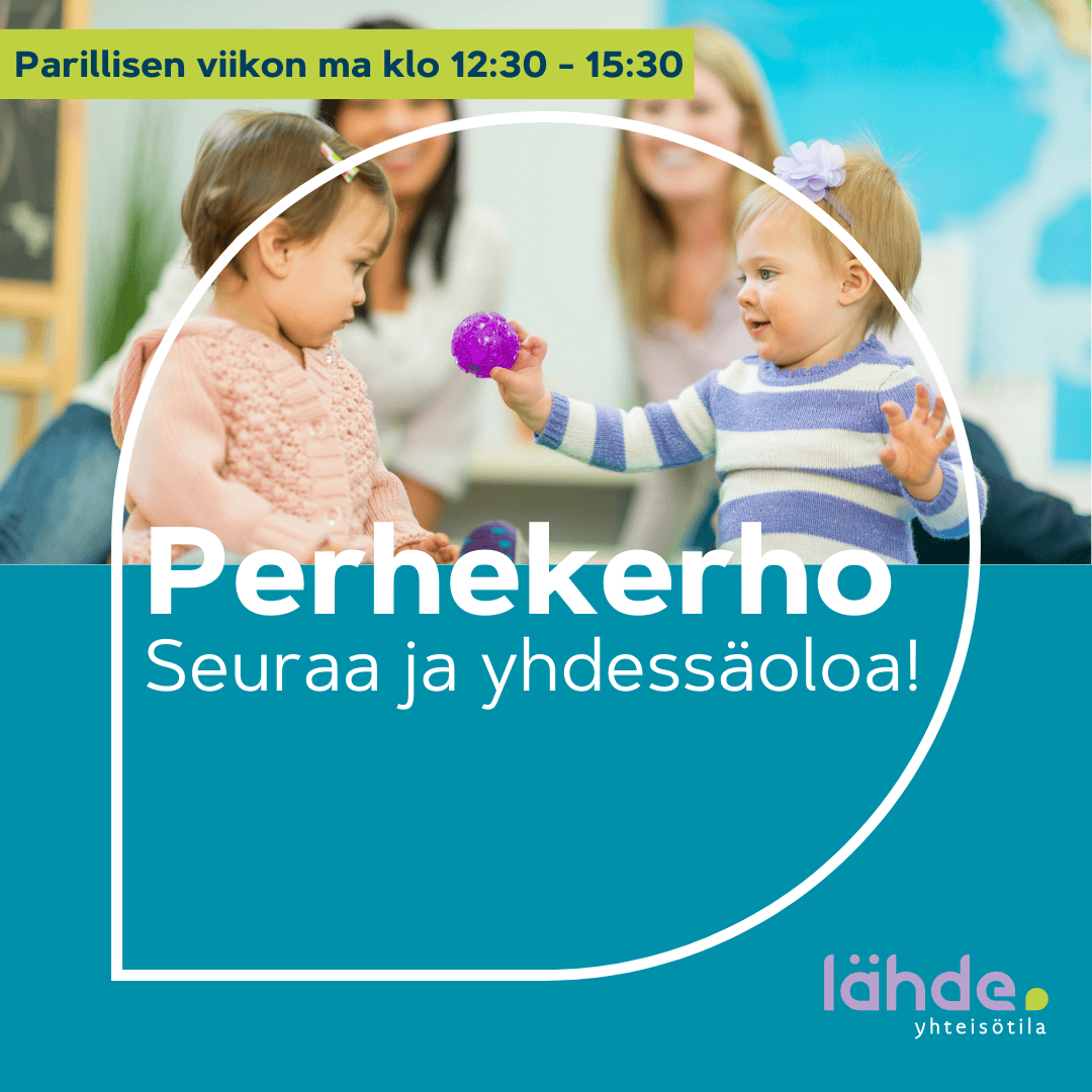 Jos kaipaat seuraa ja yhdessäoloa pienen lapsen kanssa päiväsaikaan, olette lämpimästi tervetulleet mukaan. Kokoonnumme rennosti ja vapaamuotoisesti yhteen parillisten viikkojen maanantaisin klo 12:30-15:30 Lähteen Loungen puolelle osoitteessa Vesijärvenkatu 38.